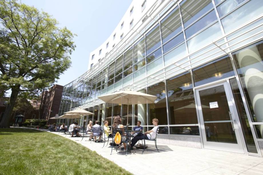 - The Campus Center building is LEED-certified and contains a new student center, dining hall, and residence hall with suite-style accommodations for 108 students. It reportedly has "magnificent views of Boston."