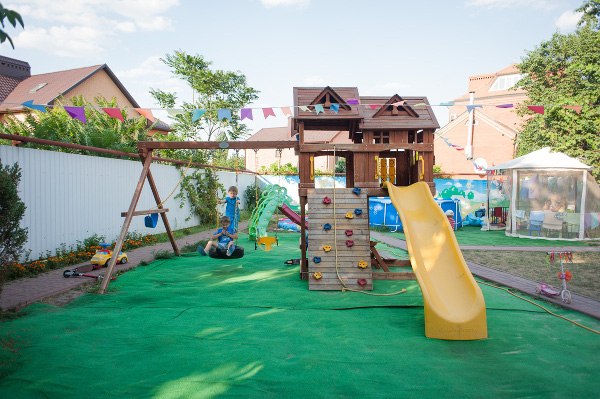 Частный дом, отдельная закрытая территория, оборудованная детская площадка, горки, бассейн и многое другое.